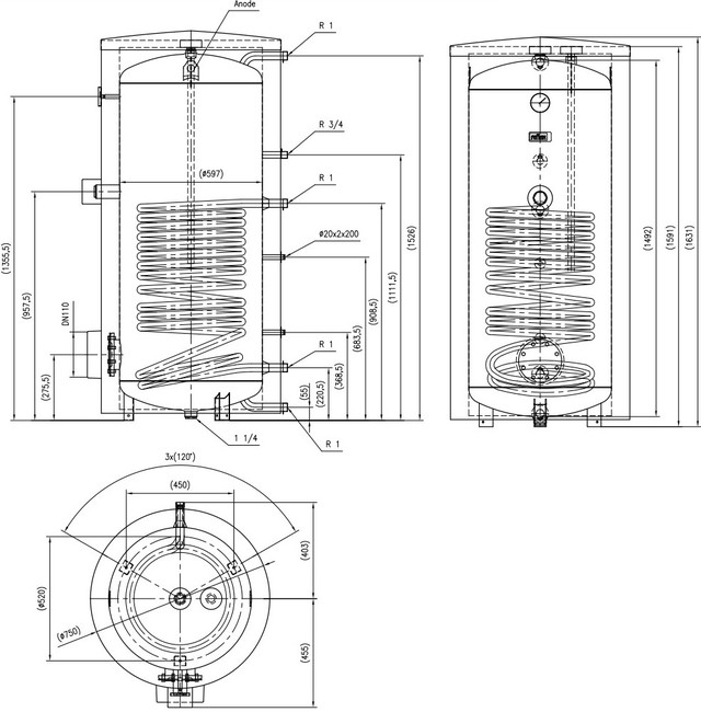 - Водонагрівачі AF … /1M до 500 літрів забезпечені додатковим підключенням Rp 1 1/2" для нагрівального елемента