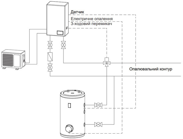 Датчик може бути встановлений для регулювання під'єднання системи бака гарячої води до інших джерел тепла.